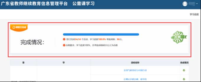 教师可通过核查以下界面,确认完成公需课学习: